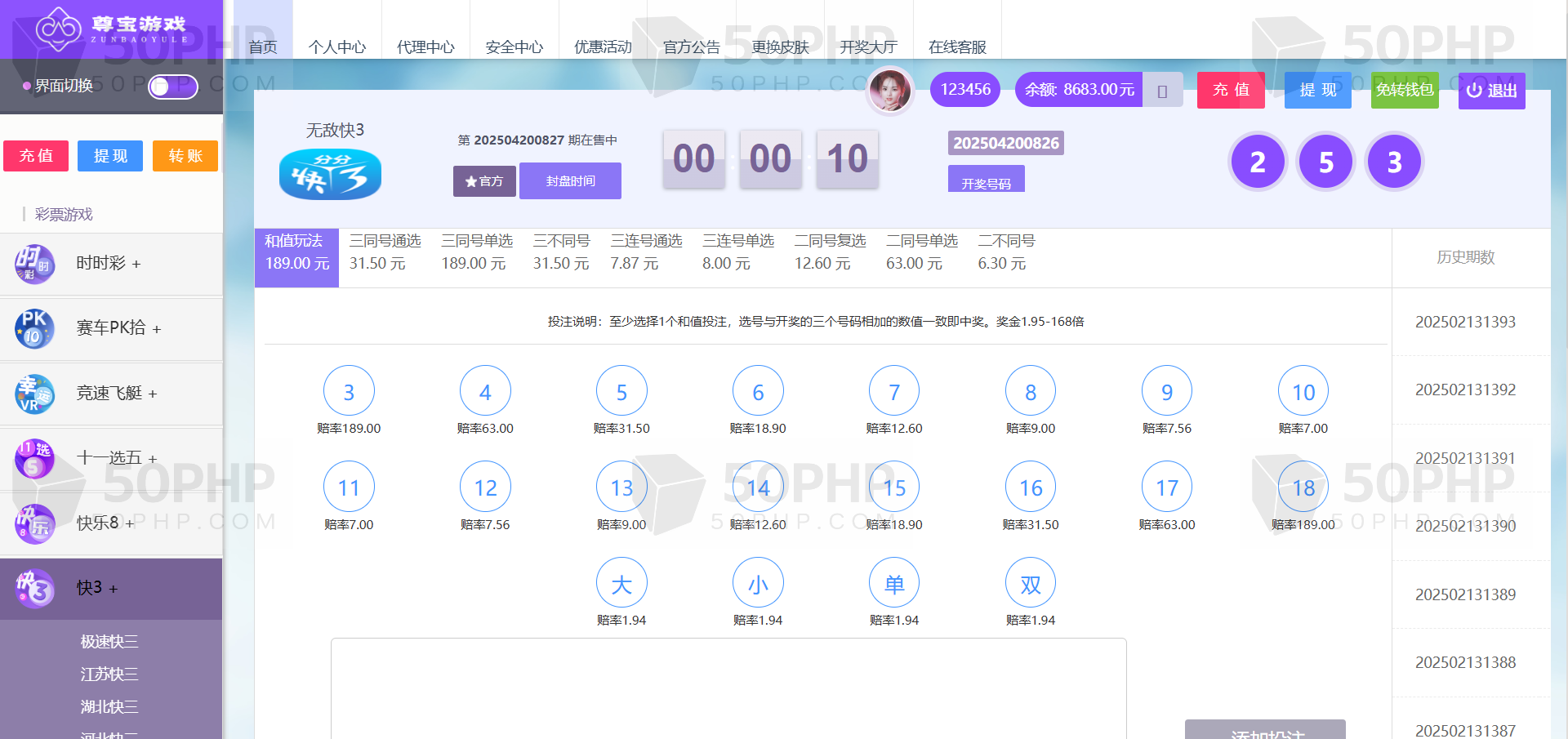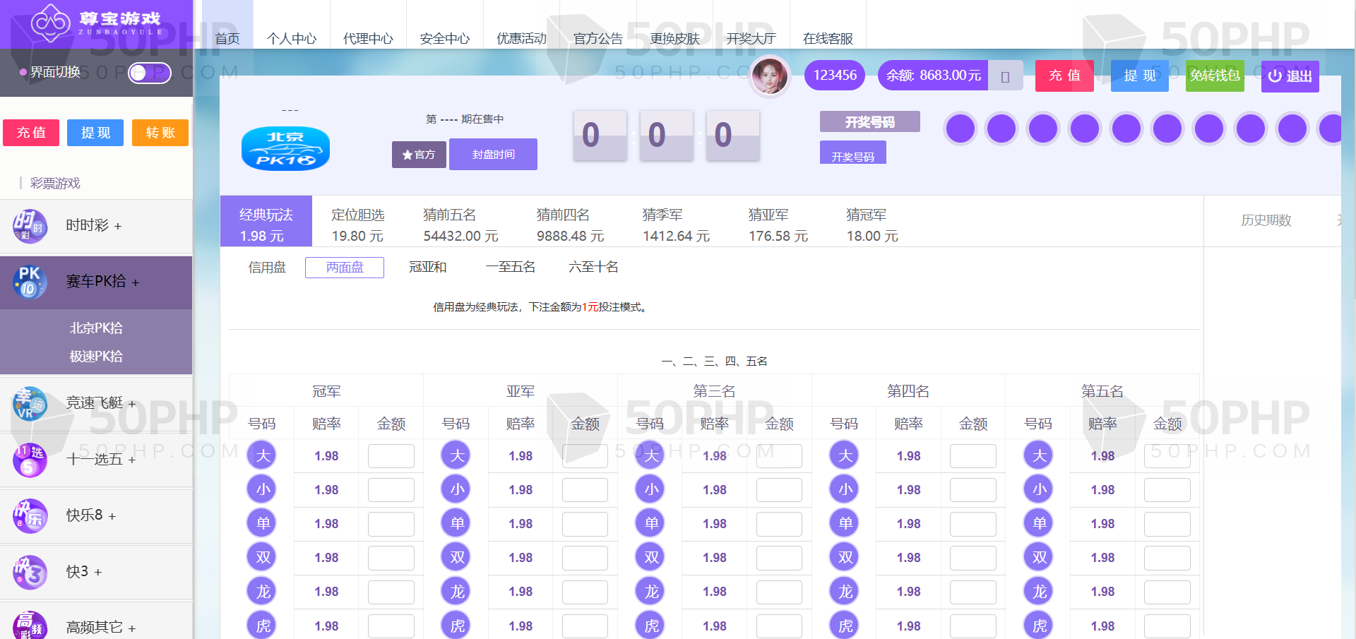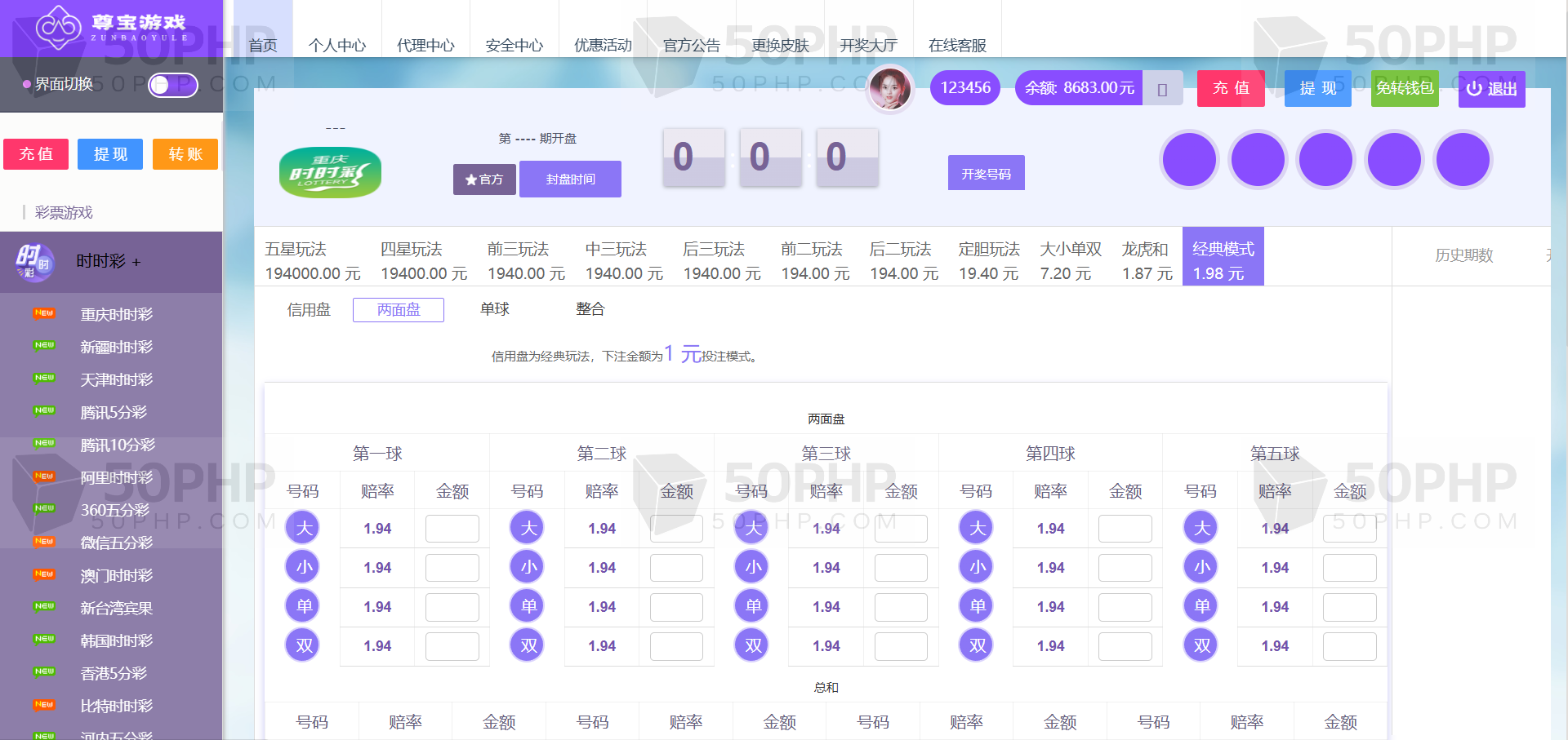 信用盘/双面盘玩法,后台支持自动风控/添加彩种/玩法/预设开奖/控制/改单