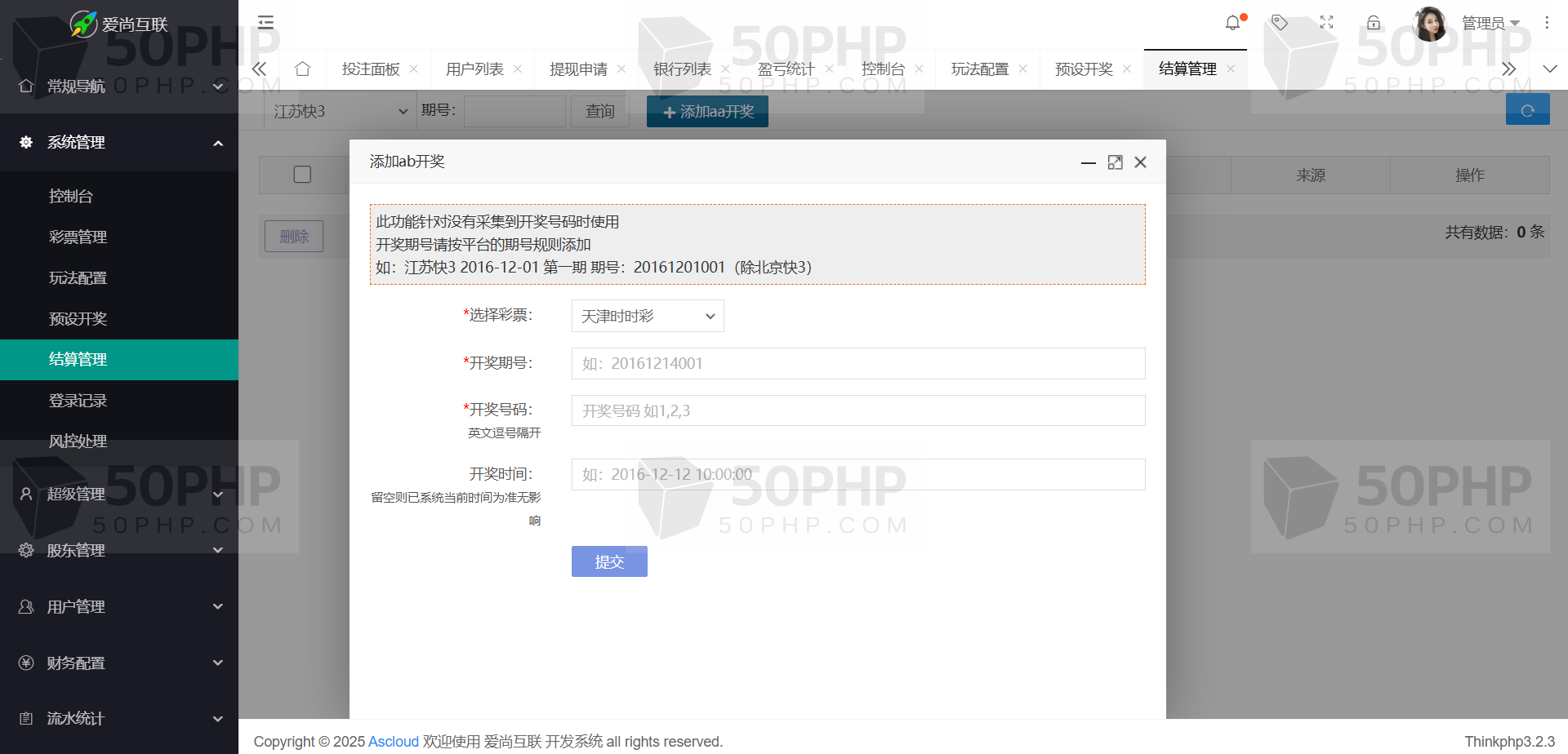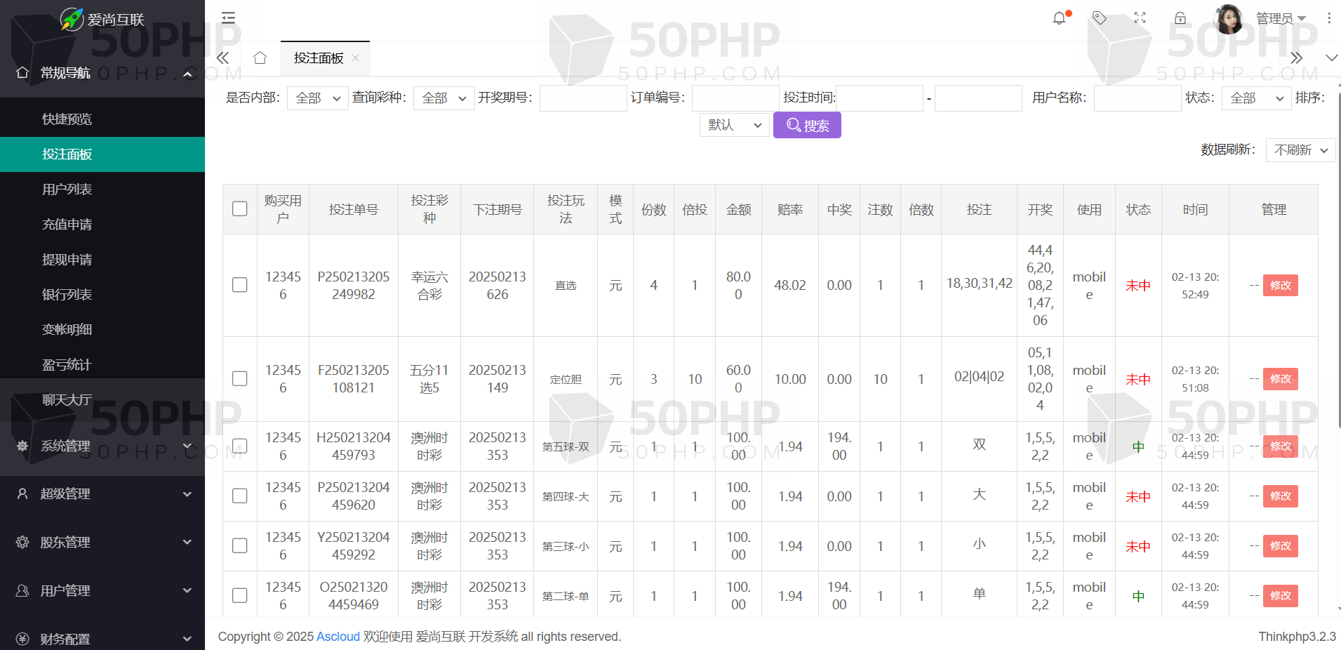 TP框架 PHP语言 全开源可二次开发时时彩源码