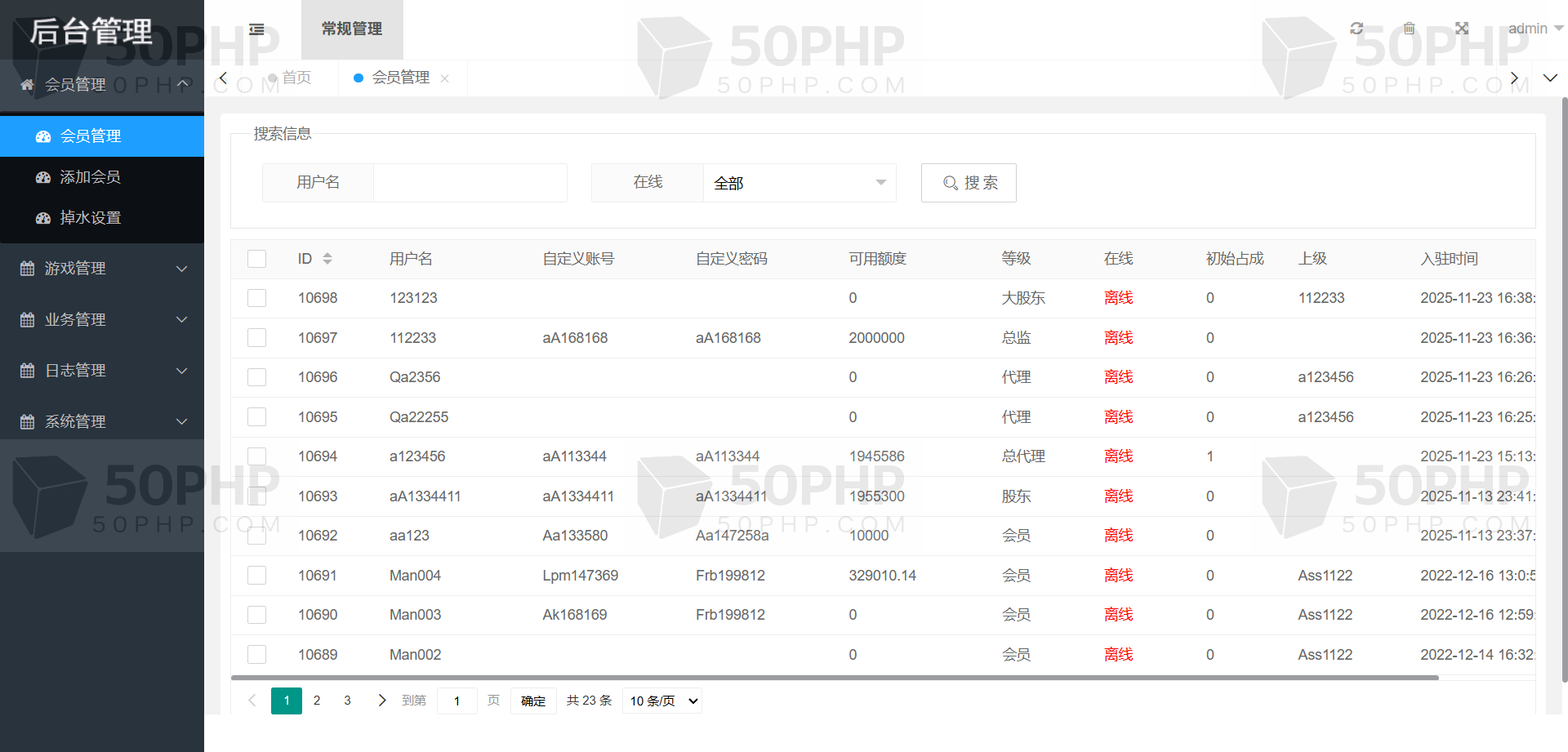 总管理员-公司-股东-大股东-总代理-代理-会员